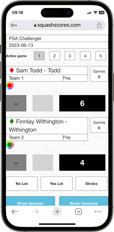 • Enable live scoring using the SQUASHTV.local web-based scoring tool.